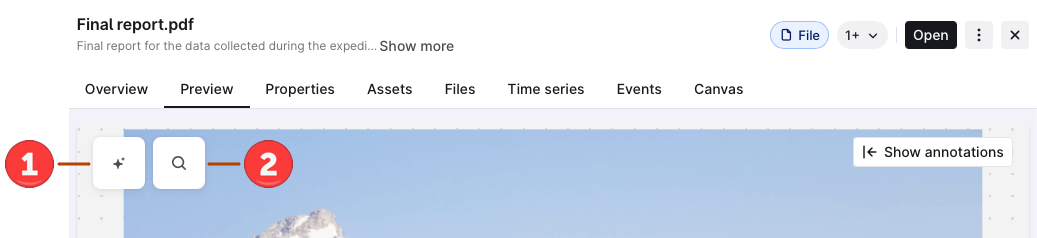 Select a result to preview the details in the right-hand sidebar, and open the item in Charts or Canvas for further analysis.Work with PDF files